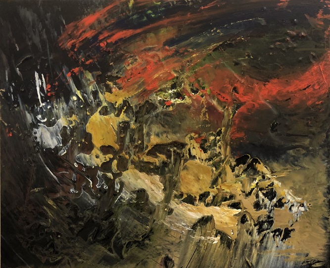 acrylic, wood glue, and vinyl on panel